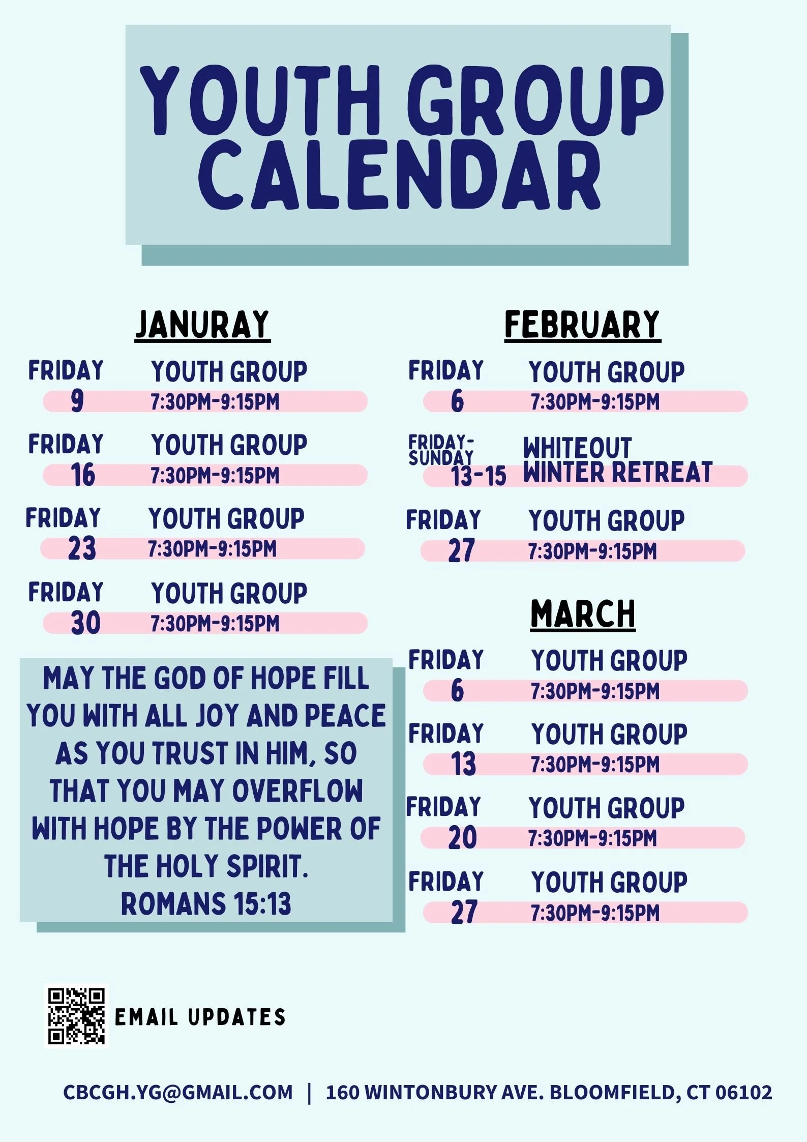 青少年事工歡迎所有六至十二年級的青少年參加,聚會時間為每週五晚上 7:30 至 9:00,地點在 Fellowship West。誠摯邀請您一同來參與遊戲、團契、敬拜與教導的美好時光!